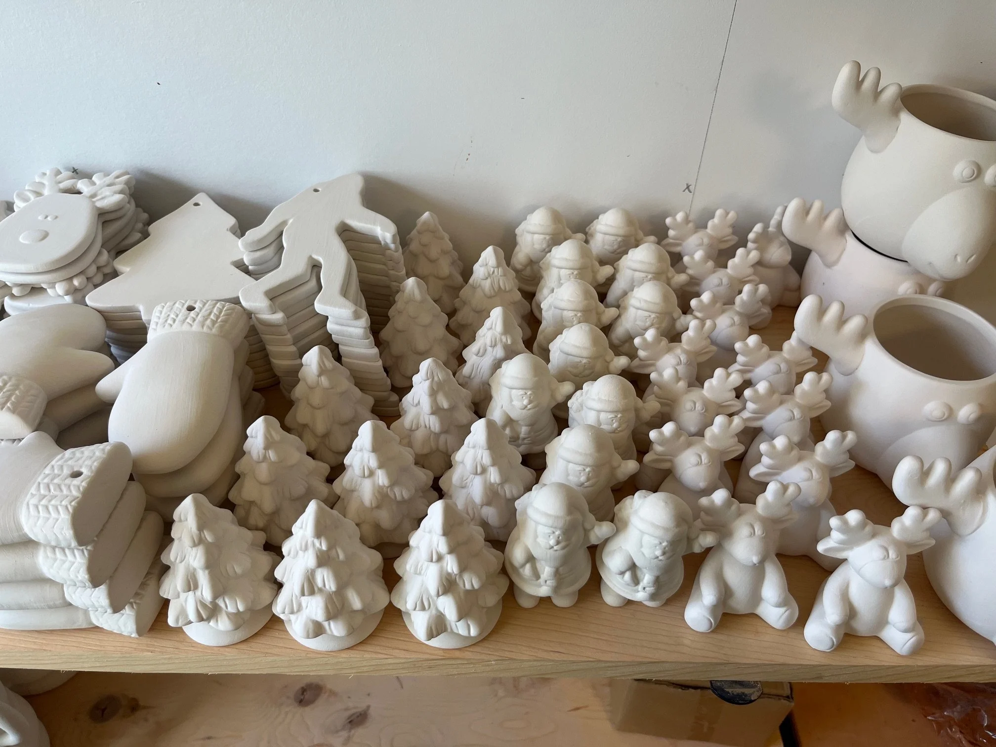 Come paint ornaments at your leisure between 12-4pm! We have a dozen different shapes to choose from. They’ll be fired and ready to hang on your trees December 12th.